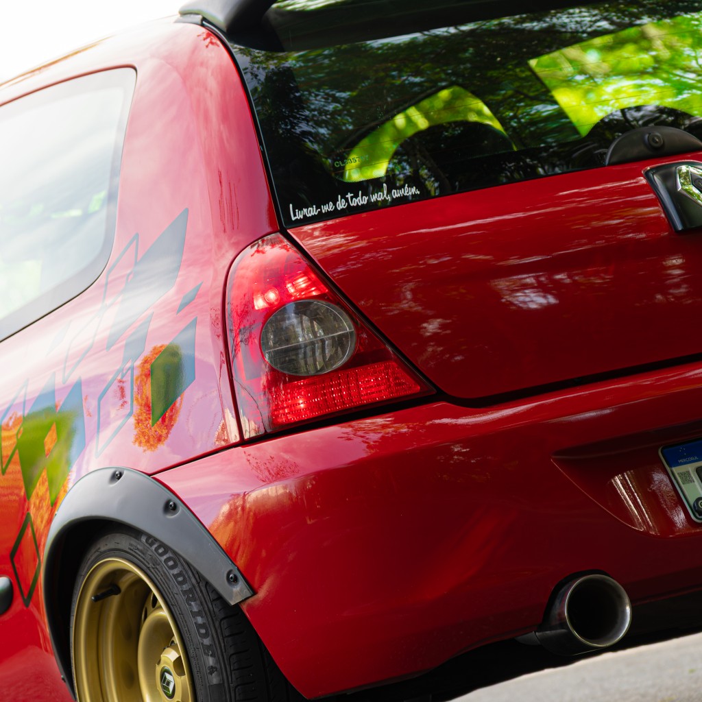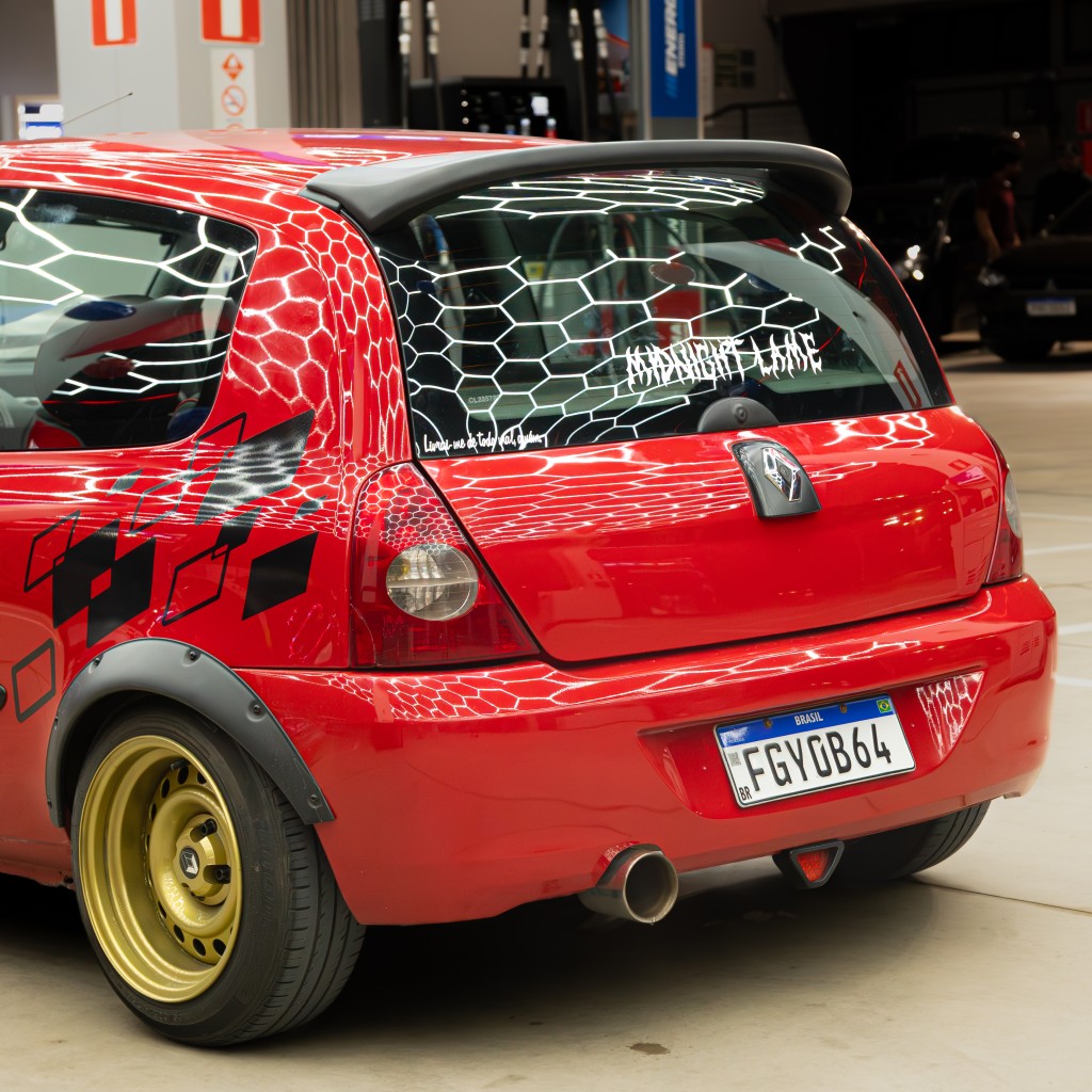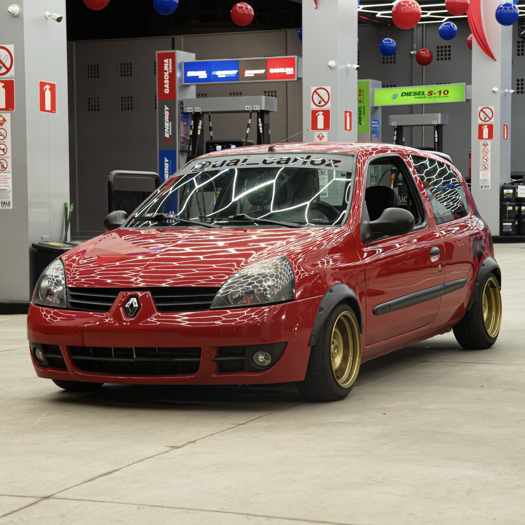 Fotógrafo e filmmaker, Carloz olha para os carros com o mesmo cuidado de quem enquadra uma cena. Seu Clio D4D aspirado, ainda em construção, segue um caminho claro: estética como prioridade, conceito acima do óbvio e evolução constante. Cada modificação não é apenas uma peça nova, mas parte de uma narrativa visual que se constrói aos poucos.